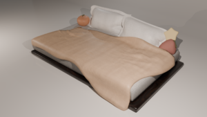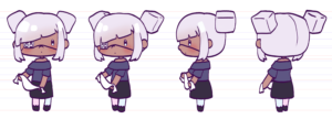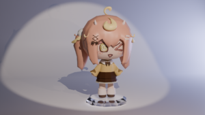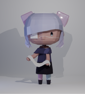 3D low-poly model of original character using the turn-around, made in Blender 2024