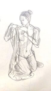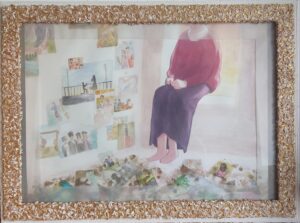 Mixed Media Project (Selfmade wooden frame with sculpting paste, watercolor painting and printed woman)